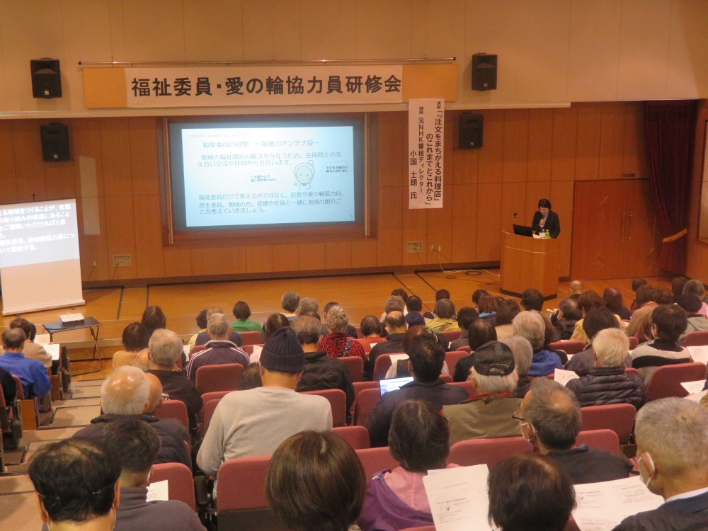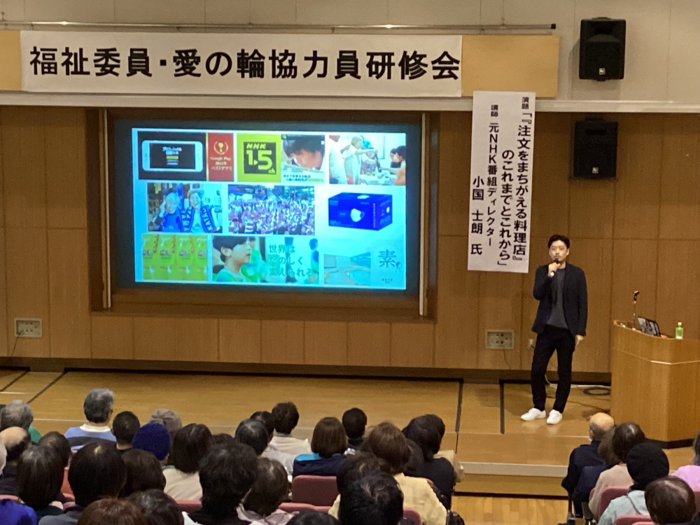 その後、元NHK番組ディレクターの小国士朗様を講師に、「『注文をまちがえる料理店』のこれまでとこれから」と題し、認知症の方がスタッフを務める料理店での取組を交えて講演をしていただきました。認知症があっても、住み慣れた地域で自分らしく安心して暮らしていくための大切な視点や気づきがあり、大変勉強になりました。
